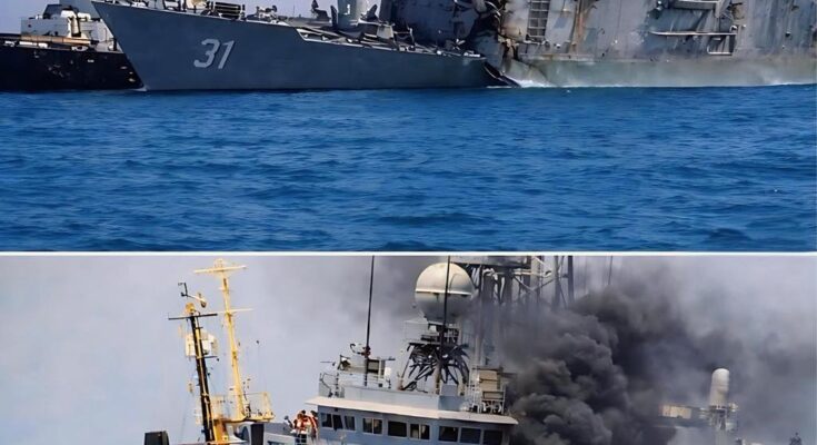 During the exercise, the Harpoon missile struck the hull of USS Rodney M. Davis with devastating precision. Designed to skim just above the sea surface, the missile penetrated the ship’s defenses and detonated, causing severe structural damage. Observers reported a large explosion followed by thick smoke rising from the vessel as fires spread internally. The impact demonstrated the destructive power of modern anti-ship missiles against legacy naval platforms.